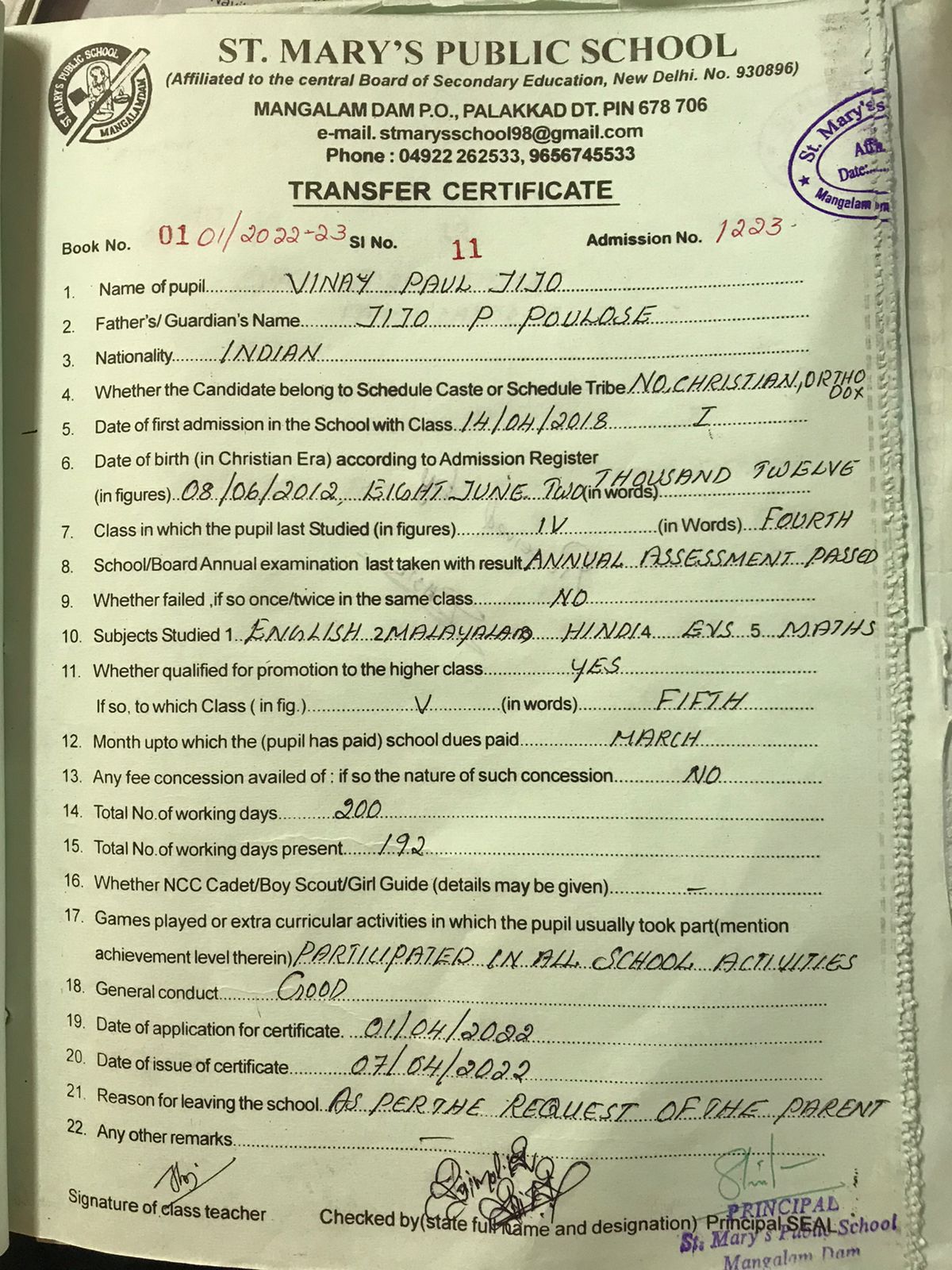 | 11 | VINAY PAUL JIJO | Download |