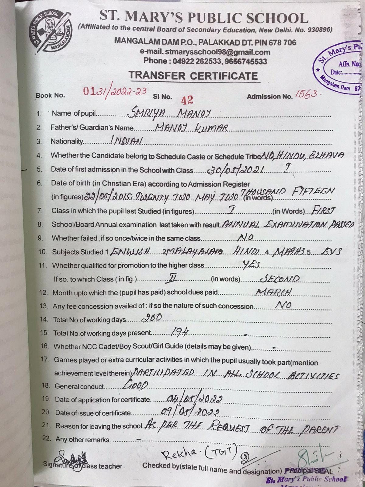 | 42 | SMRIYA MANOJ | Download |